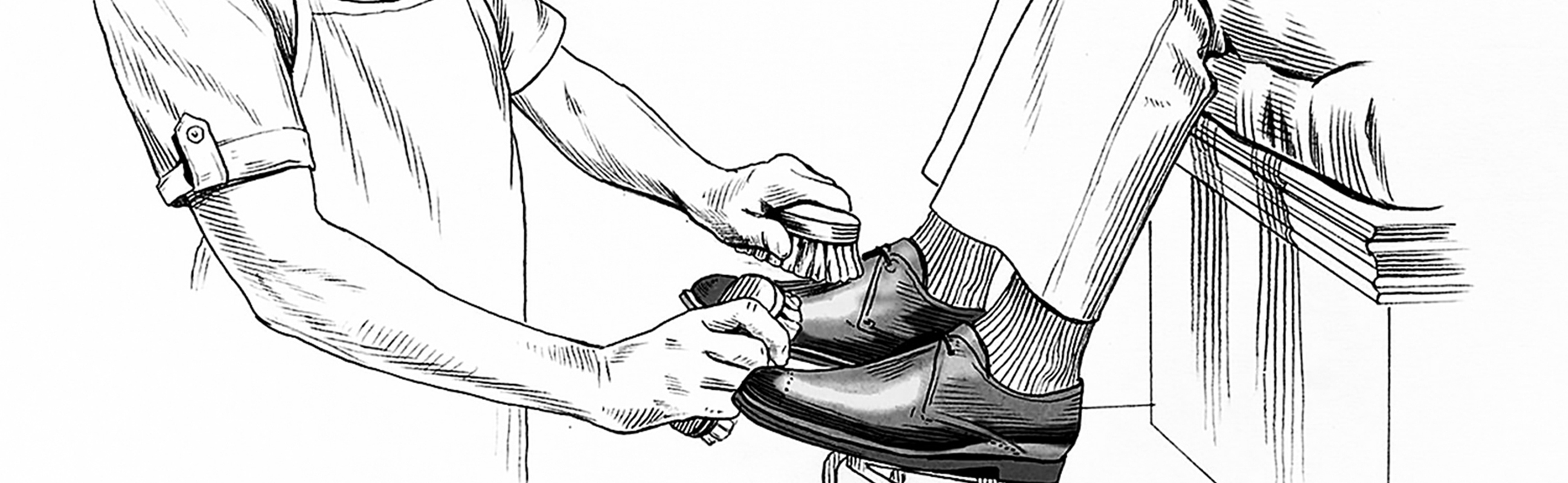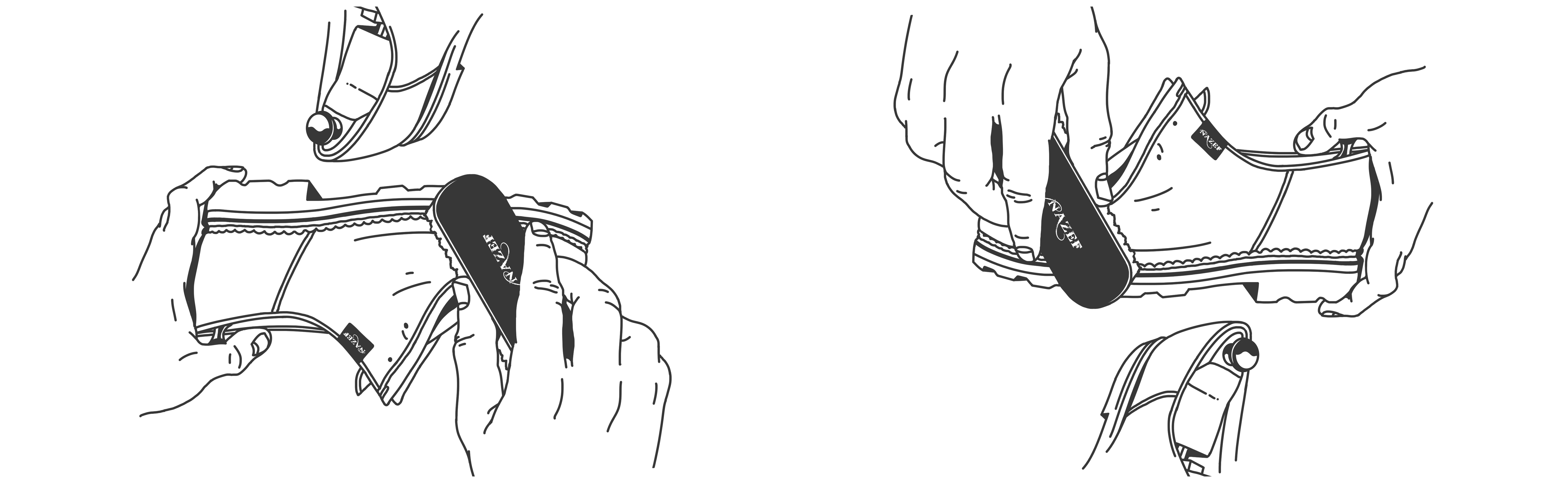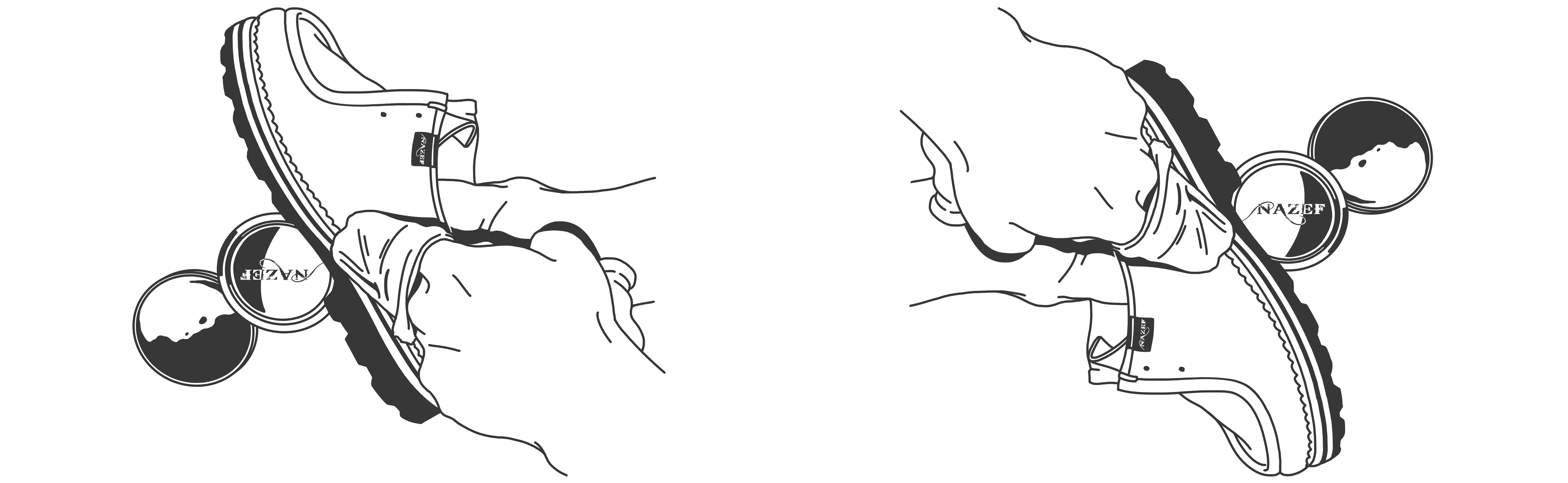 Brush your shoes to shine. and to remove excess polish, use a polishing sponge to go over it with slow and oval movements without pressing. and put your laces back on. Spray the inside of your shoes with deodorizing spray and place them in a wooden shoe mold to rest for a day and allow the deformed structure to straighten again.